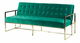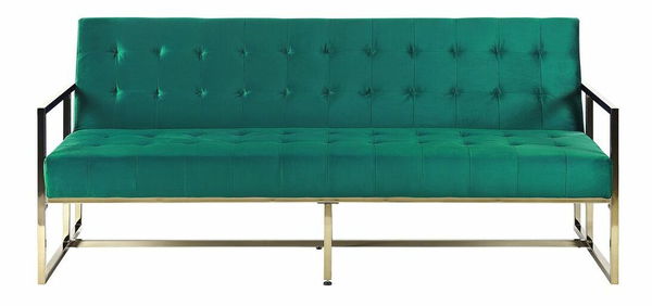 Díky této okouzlující pohovce bude váš obývací pokoj vypadat jako z obálky časopisu o interiérovém designu. Siluetu pohovky zvýrazňuje jemné sametové čalounění doplněné úhledným prošíváním, které mu dodává nádech dekadentního stylu. V kombinaci s jednoduchým zlatým rámem v lesklém provedení se stane nádherným středobodem každého interiéru. Výjimečnost této pohovky přesahuje její luxusní vzhled, protože díky sklopnému opěradlu poslouží i jako postel. Tato třímístná pohovka bude nejelegantnějším a nejfunkčnějším kusem nábytku ve vašem interiéru.