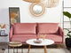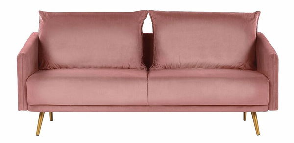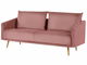 Neuvěřitelný komfort, na omak jemné čalounění a stylové provedení – to vše nabízí tato růžová pohovka. Sedací část a opěradla jsou vyplněna kapesními pružinami, které umožňují dlouhý a ničím nerušený odpočinek. Pohovka se sametovým čalouněním a zlatým kovovým nohama dokonale doplní obývací pokoj zařízený ve stylu glamour, ale i interiéry zařízené v retro či boho stylu.
