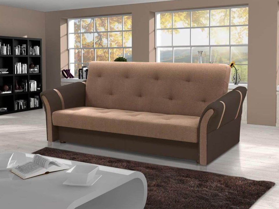 Pohovka trojsedačka Miriella je kvalitní nábytek, který se hodí do každého obývacího prostoru. S výškou 90 cm a hloubkou 95 cm poskytuje maximální pohodlí a komfort. Muna 3+ Muna 6 jsou ideální pro pohodlné posezení nebo spaní. Rám pohovky je vyroben z masivního dřeva a dřevotřísky, což zaručuje vysokou kvalitu a trvanlivost. Sedátko má bonellovou pružinu (tloušťka drátu - 2,4 mm) a vysokoelastickou pěnu T 30 o tloušťce 2 cm, což zajišťuje optimální podpůrné vlastnosti. Podpůrný mechanismus otevírání a typ rozkladu - klik-klak nabízí jednoduchý, ale spolehlivý způsob přeměny pohovky na postel. Plocha spaní je velkorysá 182 x 120 cm, což umožňuje pohodlné spaní pro dvě osoby. Pohovka trojsedačka Miriella v hnědé barvě je dokonalým doplňkem vašeho interiéru.