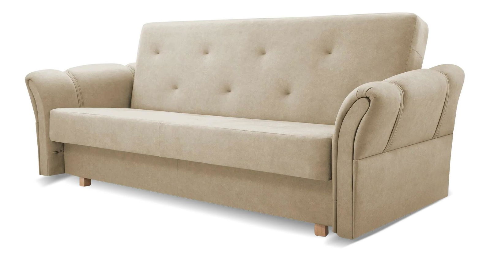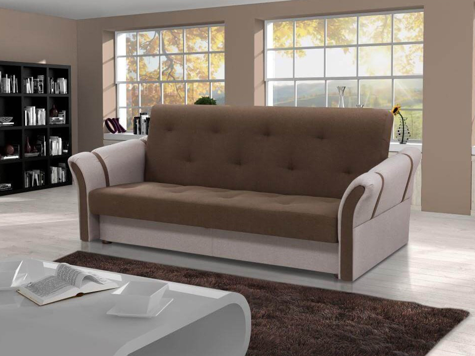 Pohovka trojsedačka Miriella v béžové barvě o výšce 90 cm a hloubce 95 cm je skvělým přírůstkem do vašeho obývacího prostoru. S rozměrnými sedadly nabízí dostatek místa pro celou rodinu. Rám pohovky je vyroben z masivního dřeva a dřevotřísky, což zaručuje stabilnost a odolnost. Sedací část je vybavena bonellovou pružinou o tloušťce drátu 2,4 mm a vysokoelastickou pěnou T 30 o tloušťce 2 cm. Podpůrný mechanismus otevírání umožňuje rychlé a snadné provedení pohovky na plochu spaní o rozměrech 182 x 120 cm. Typ rozkladu klik-klak zajišťuje pohodlné a lehké rozložení pohovky. Výrobek je vyroben z kvalitních materiálů a je vhodný pro každý interiér.