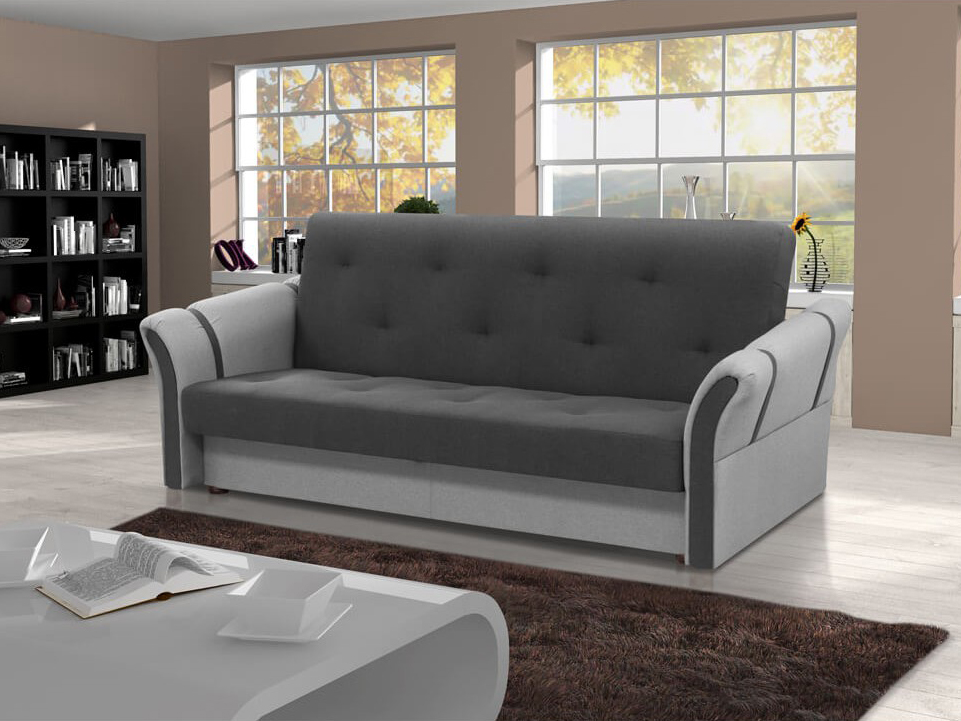 Pohovka trojsedačka Miriella (šedá) o výšce 90 cm a hloubce 95 cm je ideální pro váš obývací prostor. Její rám je vyroben z masivního dřeva a dřevotřísky, které zaručují pevné a stabilní spojení. Na sedadlové části se nachází bonellová pružina o tloušťce drátu 2,4 mm a vysokoelastická pěna T 30 o tloušťce 2 cm, které poskytují maximální komfort při sezení. Pohovka disponuje podpůrným mechanismem otevírání a její plocha spaní je 182 x 120 cm. Typ rozkladu je klik-klak. Tato pohovka je dokonalým spojením kvality a stylu, která se stane skvělým doplňkem vašeho interiéru.