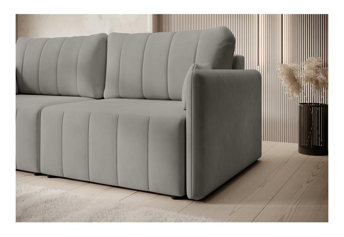 Funkce spaní, Možnost přestavby na rohovou pohovku, Úložný prostor, Čalouněný opěradlo