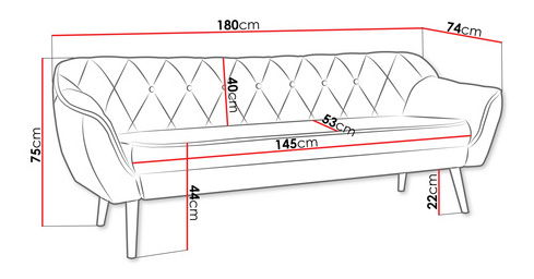 ZobrazitPohovka trojsedačka je ideální volbou pro ty, kteří hledají pohodlí a styl. Krásný vzhled a každodenní pohodlí nabízí moderní pohovka Qurimen 3 Konstrukce na nožičkách dodá vašemu uspořádání lehkost a zpříjemní okolí. Navíc je velkým pomocníkem při udržování čistoty podlahy. Rám tohoto modelu je vyroben z borového dřeva. 3místná pohovka poskytuje pohodlné sezení a opěradlo zdobené prošívaným vzorem. Další výhodou sedačky je její zadní část potažená látkou, takže tuto volně stojící variantu můžete umístit kamkoli budete chtít. Rozměry: délka: 180 cm, šířka: 74 cm, výška: 75 cm Provedení: rám: borovicové dřevo, sedátko: 10 cm silná pěna T25 + vlnová pružina, opěradlo: pěna T25, tloušťka 3 cm, nerozkládací, trvale připevněno, volno, dřevo stojící (záda potažená látkou) Záruka: 24 měsíců