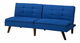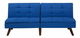 Tato pohovka je skvělou volbou v případě, že hledáte funkční a stylový design. Opěradlo je rozděleno na dvě samostatně nastavitelné části, které mají 3 polohy nastavení. Díky opěradlu lze pohovku změnit na postel nebo přizpůsobit nastavení opěradla tak, aby vyhovovalo dvěma lidem současně. Čalounění je vyrobeno z modrého polyesteru, který se snadno udržuje. Nohy z masivu v teplém odstínu příjemně doplňují barvu čalounění.
