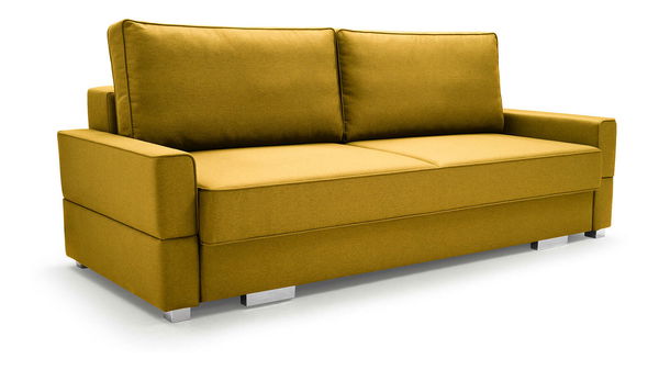 Pohovka trojsedačka Star ve žluté barvě je ideálním doplňkem pro moderní obývací pokoje, kanceláře či stylové studentské pokoje. Její pevná konstrukce ze dřeva a dřevotřísky zaručuje dlouhou životnost, zatímco kvalitní pěna T-30 a pružinový systém falistých pružin poskytují pohodlné sezení i spaní. Díky rozkládacímu mechanismu na vozík se pohovka jednoduše přemění na příležitostné lůžko o rozměrech 197 x 147 cm. Praktický úložný prostor pod sedákem pomůže udržet pořádek a uskladnit ložní prádlo či sezónní doplňky.