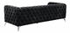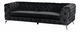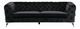 Ladná silueta této třímístné pohovky s nízkým opěradlem vnese do vašeho interiéru pohodlí a nadčasovou eleganci a stane se středobodem místnosti. Černé sametové čalounění vypadá opravdu výjimečně a je příjemné na dotek. Díky klasickému prošívání s knoflíky a stylovým kovovým nohám bude vypadat dokonale v moderních interiérech zařízených v minimalistickém, retro či glamour stylu.