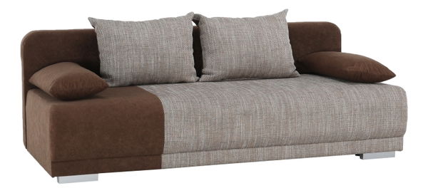 Zajistěte si pohodlí s touto krásnou pohovkou moderního designu. Je potažena šenilem hnědé a béžové barvy a stojí na silnějších kovových nohách. Výhodou této pohovky je možnost rozkladu, čili Vás už nepřekvapí nečekaná návštěva, která u Vás bude chtít přespat. Pohovka disponuje i praktický úložným prostorem, do kterého uložíte ložní prádlo a jiné doplňky.