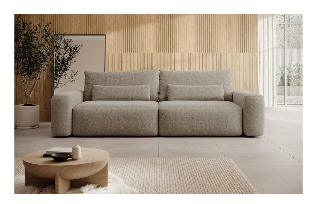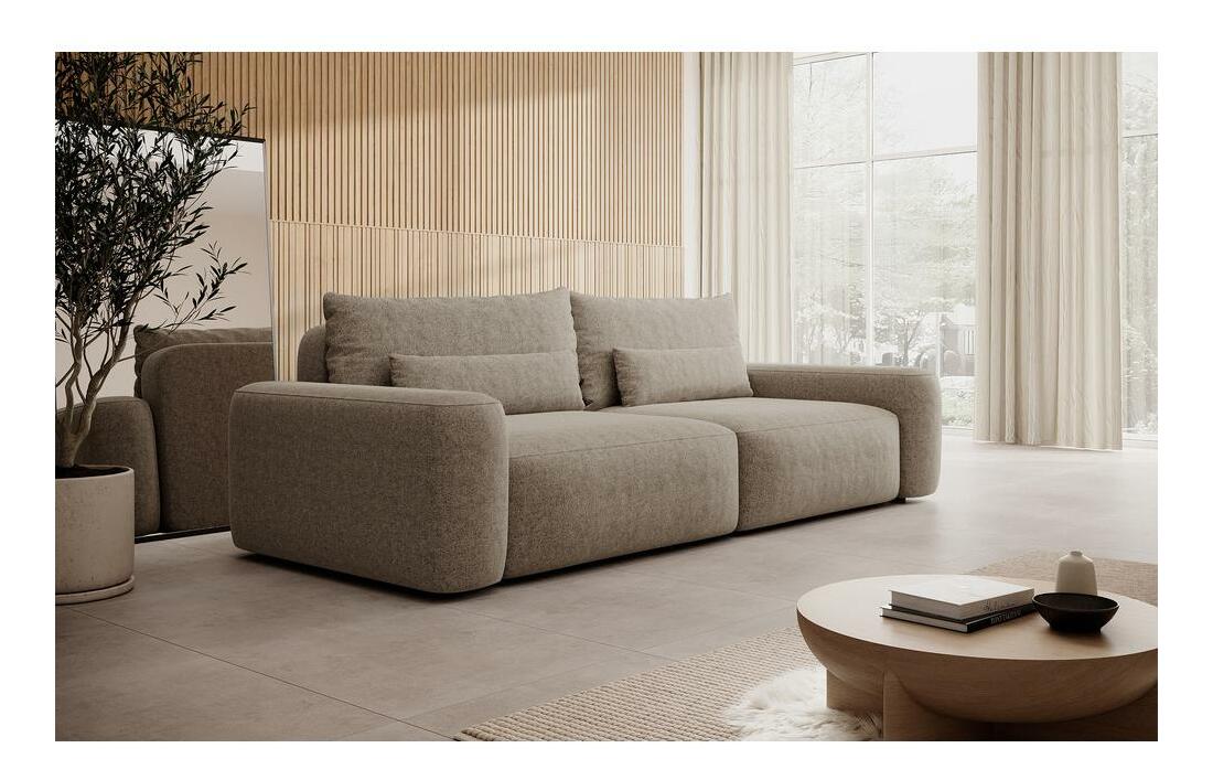 ZobrazitHledáte pohodlnou pohovku, která potěší nejen svým designem, ale poskytne také dokonalý relax po dlouhém dni? Právě jste to našli! Sedačka je spojením nejvyšší kvality zpracování, estetiky a funkčnosti Třímístná sedačka je spojením harmonických zaoblených tvarů s minimalistickou strukturou, čímž vzniká kus nábytku s mimořádně moderním výrazem! Pohovka vyrobená z vysoce kvalitní žinylkové látky vyzařuje eleganci a pohodlí. Součástí sady jsou vkusné polštářky, které dodají celému tomu neopakovatelné kouzlo. není jen styl a estetika, je to také funkčnost přizpůsobená potřebám každodenního života. Pohovka vybavená DL mechanismem se snadno přemění na pohodlné místo na spaní Díky automatickému mechanismu se její složení do polohy na spaní stane dětskou hrou. Pohovka navíc obsahuje praktický zásobník na ložní prádlo, který vám umožní udržovat v místnosti pořádek. Pohodlí sedadla je zdůrazněno použitím vlnových pružin typu B v sedadle, které poskytují vynikající oporu a rovnoměrné rozložení hmotnosti těla. Pohovka je ideální volbou pro ty, kteří ve svém okolí oceňují estetiku i funkčnost. Přidejte se k revoluci v pohodlném relaxu!Vyberte si pohovku a objevte nový rozměr relaxu ve svém interiéru!Hledáte něco většího?Nezapomeňte si prohlédnout naše rohové sedací soupravy ze stejné kolekce !Produkt detaily: volně stojící model (s čalouněnými zády) snadno použitelná funkce spaní typu DL, standardně praktický zásobník na ložní prádlo, vlnové pružiny typu B v sedadle, dva dekorační polštáře součástí balení, nábytek čalouněný látkou Melody 12 ve světle hnědé barvě, Melody je hustá a odolná tkanina v ženilkm stylu s čirými uzly připomínající. Jemnost a okouzlující dotek této látky nabízí neuvěřitelný pocit pohodlí. Neuvěřitelná gramáž 480 g/m2 poskytuje komfort, který se mezi jinými látkami jen obtížně hledá.