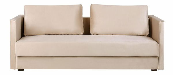 Tato pohovka s moderním designem je dokonalým doplňkem do jakéhokoli moderního, tradičního nebo minimalistického obývacího pokoje. Je čalouněná jemným sametem v béžové barvě, má tlustá sedadla a opěradla a stabilní dřevěné nohy, které zajišťují nejvyšší úroveň pohodlí. Polštáře na opěradle mají snímatelné potahy, díky kterým bude čištění případných skvrn o něco jednodušší. Tuto elegantní a moderní pohovku lze velmi jednoduše přeměnit na postel a vytvořit pohodlnou alternativu klasické postele pro hosty. Pohovka má také praktický úložný prostor, do kterého můžete odložit prádlo a různé doplňky.
