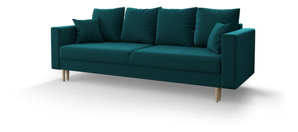 Trojsedačka Kinetic ve smaragdové barvě je řešením pro každý obývací pokoj, který vyžaduje stylový a zároveň praktický nábytek. Její pevná dřevěná konstrukce v kombinaci s kvalitní výplní z pěny T30 a vlnitých pružin zajišťuje pohodlné sezení i ležení. Rozkládací mechanismus DL automat umožňuje rychlé a snadné přeměnění pohovky na prostorné lůžko o rozměrech 195x135 cm. Díky úložnému prostoru pod sedákem získáte praktické místo pro uskladnění ložního prádla nebo jiných doplňků, což oceníte zejména v menších bytech.