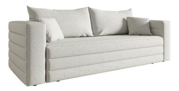 Oceňujete spojení elegance a praktičnosti? Vyberte si naši pohovku a určitě nebudete zklamáni Třímístná pohovka je základem pohodlí a jedinečného designu. Jedním z nejpraktičtějších prvků sedačky je její spací funkce. Díky rozkládacímu mechanismu DL se z pohodlného sedáku během chvilky přemění na pohodlné lůžko. Snadno jej přizpůsobíte svým potřebám a poskytnete sobě nebo svým hostům pohodlné místo k odpočinku. Pokud jde o pohodlí, pohovka nabízí nejen skvělé místo k sezení a spánek, ale poskytuje i další praktický prvek. Vnitřek pohovky je navržen pro uložení ložního prádla a dalších potřebných doplňků. Skrytý kontejner na ložní prádlo pomáhá udržovat pořádek v místnosti a zajišťuje, že vše potřebné pro přípravu postele je vždy po ruce. Tkanina boucle použitá k dokončení pohovky dodává pohovce luxusní a útulný vzhled a vyznačuje se výraznou smyčku strukturou, která jí dodává. trojrozměrný vzhled. Tato poutka dodávají látce jedinečnou texturu a texturu Detaily produktu: volně stojící model, tj. s čalouněným opěradlem, funkce DL spaní umožňuje velmi rychlé rozložení rohové sedačky, standardně zásobník na ložní prádlo, pružiny Bonnell uvnitř. sedák a opěradlo, nábytek je čalouněný látkou, Abramo 04 krémové barvyAbriamo je měkká, na dotek příjemná boucle látka. Tento materiál má velmi pevnou a kroucenou vazbu. Abriamo je odolné vůči tření, oděru a odlupování.