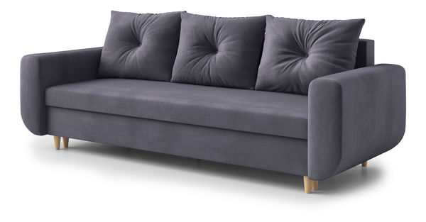 ZobrazitZakuste si styl a komfort s naší trojsedačkou Maugli. Pevný rám vyrobený z kombinace dřeva a 18mm nábytkové desky podporuje výplň sedáku a opěradla, která kombinuje bonellové pružiny a 3 cm vysokou pěnou T 30, poskytující vám optimální úroveň pohodlí. Má dřevěné nožičky v naturální barvě, o výšce 10 cm, a nabízí hladký kluzákový mechanismus pro rozkládání s plochou na spaní o rozměru 200x140 cm. Pohodlí je zdůrazněno hloubkou sezení 50 cm (s poduškami) a 73 cm (bez podušek). Sedačka je vybavena třemi poduškami, úložným prostorem v bílé barvě a čalouněnou zadní stranou, což zajišťuje flexibilní umístění v místnosti a pohodlí při relaxaci. Velkorysé rozměry opěrek na ruce (54x20x90 cm) přidávají další element pohodlí a stylu.
