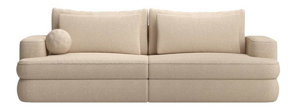 Máte rádi pobyt v minimalistických interiérech? Chcete, aby vám nábytek poskytoval pohodlí a snadno se ovládal? Vyzkoušejte třímístnou pohovku je ideální volbou pro milovníky jednoduchosti a moderního designu, díky čemuž se skvěle hodí do minimalistických interiérů. Na výběr jsou dvě vysoce kvalitní látky: výjimečně měkká a na dotek příjemná boucle látka a odolná, snadno čistitelná žinylková látka. Díky této možnosti si každý může přizpůsobit pohovku podle svého individuálního vkusu a stylu interiéru. Sedačka je vybavena 5 dekoračními polštáři, které plní nejen estetickou funkci, ale poskytují také dodatečné pohodlí při odpočinku. Jejich různé vzory a barvy umožňují přizpůsobit si pohovku dle vlastních preferencí Funkce spánku DL je praktickým řešením, které vám umožní rychle přeměnit pohovku na pohodlné lůžko. Ideální volba pro hosty nebo ty, kteří oceňují flexibilitu při uspořádání prostoru. Další výhodou pohovky je kontejner na ložní prádlo, který vám umožní uložit přehozy, přikrývky nebo polštáře bez potřeby dalšího prostoru pro jejich uložení. Sedák využívá pružiny Bonnell, což zaručuje nejen pohodlí, ale také odolnost pohovky. Díky nim se sedačka přizpůsobí tvaru těla, poskytuje optimální oporu a relaxaci i při dlouhodobém používání Hledáte něco většího? Určitě si prohlédněte naši rohovou pohovku ze stejné kolekce Podrobnosti o produktu: volně stojící model (s čalouněným opěradlem), snadno použitelná funkce na spaní typu DL, praktický kontejner na postel ve standardu, pružiny Bonnell v sedáku, hustota pěny: T30, součástí balení 5 polštářů, z toho jeden ve tvaru koule, nábytek čalouněný látkou Catch Me 02 ve světle béžové barvě, Catch Me je měkká žinylková látka s bukovitou texturou vyrobená z ozdobně točené příze s uzly a smyčkami připomínajícími ovce. Materiál je odolný vůči roztržení, odlupování, světlu a tření, díky čemuž je ideální pro čalounění každodenního nábytku. Tkanina zpomalující hoření.