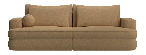 Máte rádi pobyt v minimalistických interiérech? Chcete, aby vám nábytek poskytoval pohodlí a snadno se ovládal? Vyzkoušejte třímístnou pohovku je ideální volbou pro milovníky jednoduchosti a moderního designu, díky čemuž se skvěle hodí do minimalistických interiérů. Na výběr jsou dvě vysoce kvalitní látky: výjimečně měkká a na dotek příjemná boucle látka a odolná, snadno čistitelná žinylková látka. Díky této možnosti si každý může přizpůsobit pohovku podle svého individuálního vkusu a stylu interiéru. Sedačka je vybavena 5 dekoračními polštáři, které plní nejen estetickou funkci, ale poskytují také dodatečné pohodlí při odpočinku. Jejich různé vzory a barvy umožňují přizpůsobit si pohovku dle vlastních preferencí Funkce spánku DL je praktickým řešením, které vám umožní rychle přeměnit pohovku na pohodlné lůžko. Ideální volba pro hosty nebo ty, kteří oceňují flexibilitu při uspořádání prostoru. Další výhodou pohovky je kontejner na ložní prádlo, který vám umožní uložit přehozy, přikrývky nebo polštáře bez potřeby dalšího prostoru pro jejich uložení. Sedák využívá pružiny Bonnell, což zaručuje nejen pohodlí, ale také odolnost pohovky. Díky nim se sedačka přizpůsobí tvaru těla, poskytuje optimální oporu a relaxaci i při dlouhodobém používání Hledáte něco většího? Určitě si prohlédněte naši rohovou pohovku ze stejné kolekce Podrobnosti o produktu: volně stojící model (s čalouněným opěradlem), snadno použitelná funkce na spaní typu DL, praktický kontejner na postel ve standardu, pružiny Bonnell v sedáku, hustota pěny: T30, součástí balení 5 polštářů, z toho jeden ve tvaru koule, nábytek čalouněný látkou Catch Me 05 v tmavé béžové barvě, Catch Me je měkká žinylková látka s boucle texturou vyrobená z ozdobně točené příze s uzly a smyčkami připomínajícími ovce. Materiál je odolný vůči roztržení, odlupování, světlu a tření, díky čemuž je ideální pro čalounění každodenního nábytku. Tkanina zpomalující hoření.