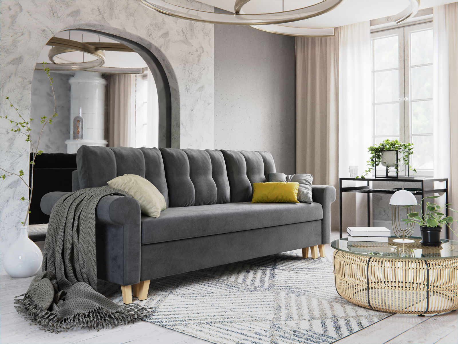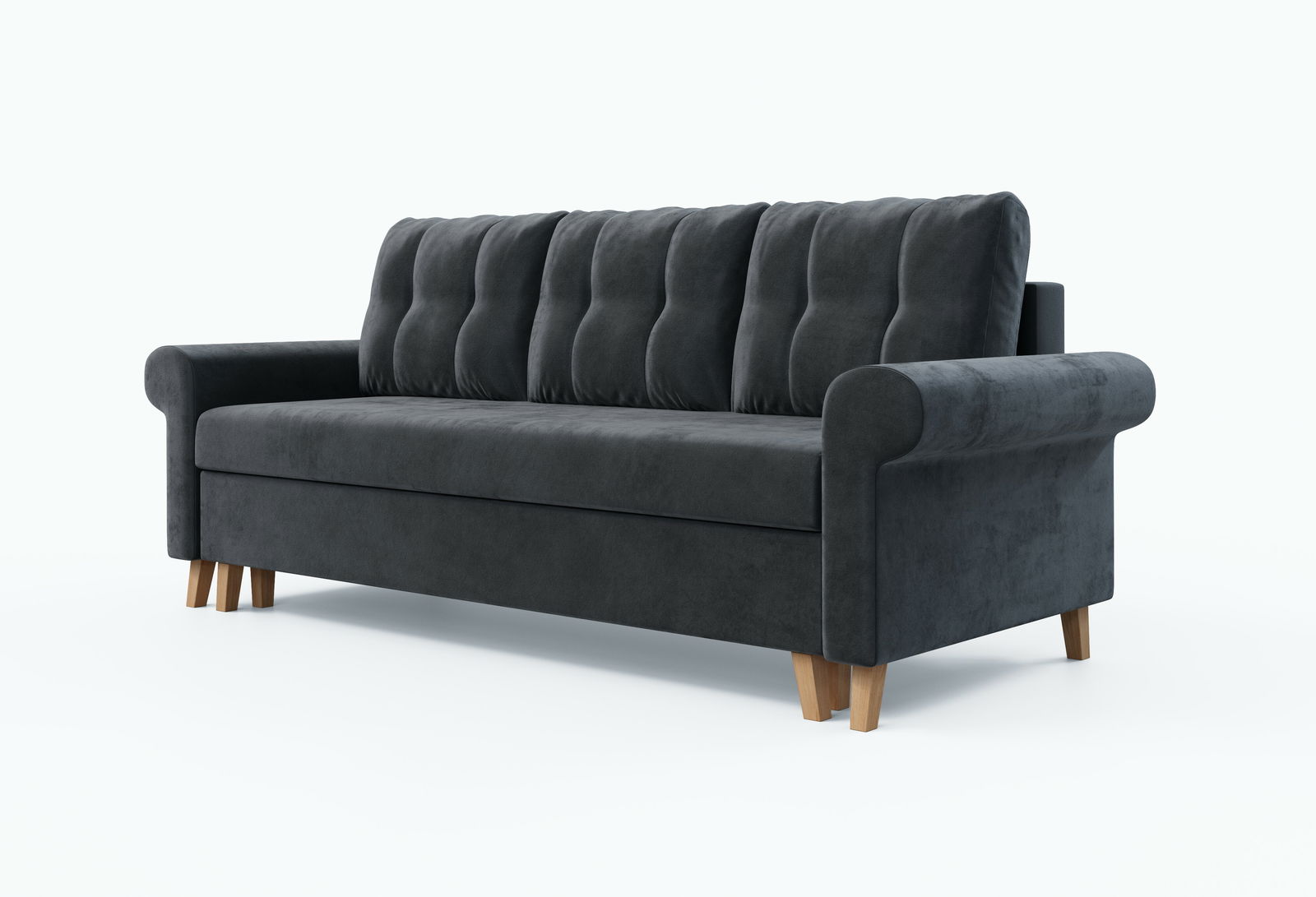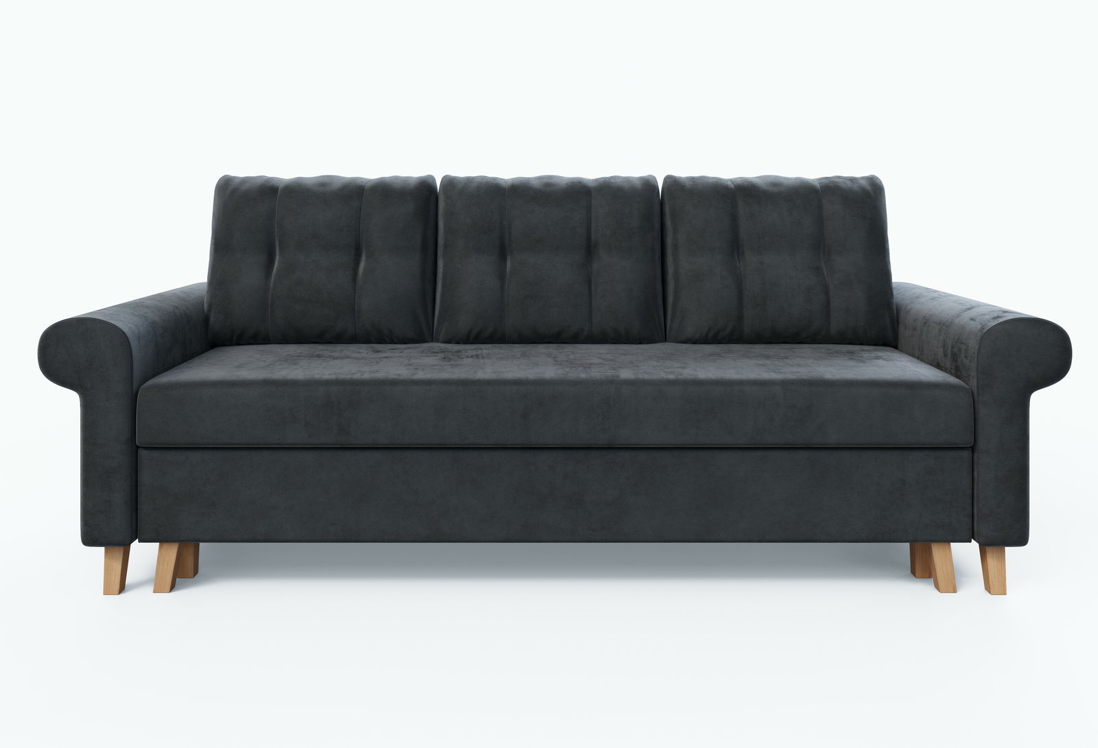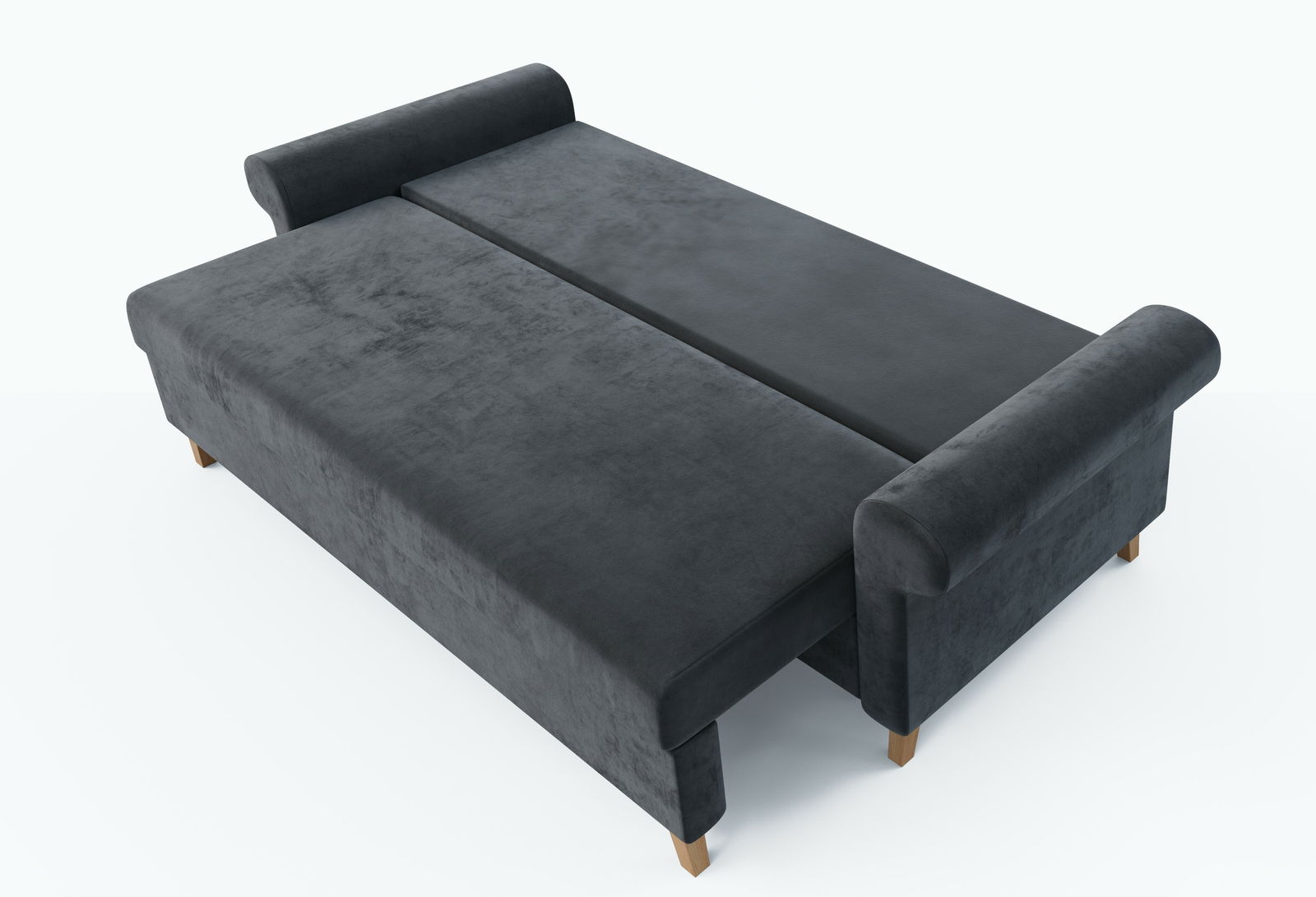 Její pevný dřevěný rám a nožičky z bukového dřeva zaručují stabilitu a dlouhou životnost nábytku. Díky rozkládací funkci se z ní jednoduše stane pohodlné lůžko o rozměrech 194 x 130 cm, což ocení návštěvy nebo rodinné.