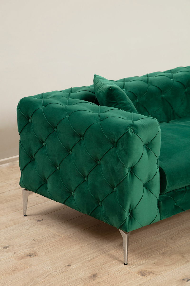 Pohovka trojsed – Collo (zelená) je skvělým doplňkem vašeho obývacího prostoru. S výškou 92 cm, šířkou 237 cm a hloubkou 100 cm poskytuje dostatek místa pro celou rodinu. Materiál z bukového dřeva a dřevotřísky zaručuje pevnost a odolnost proti opotřebení. Zelená barva dodává pohovce moderní a stylový vzhled, který by přitáhl pozornost každého návštěvníka. Pohovka má pohodlné polštáře a ergonomický design, který zajišťuje maximální komfort při sezení. Přidejte si tuto pohovku do vašeho interiéru a užívejte si relaxace ve stylu.