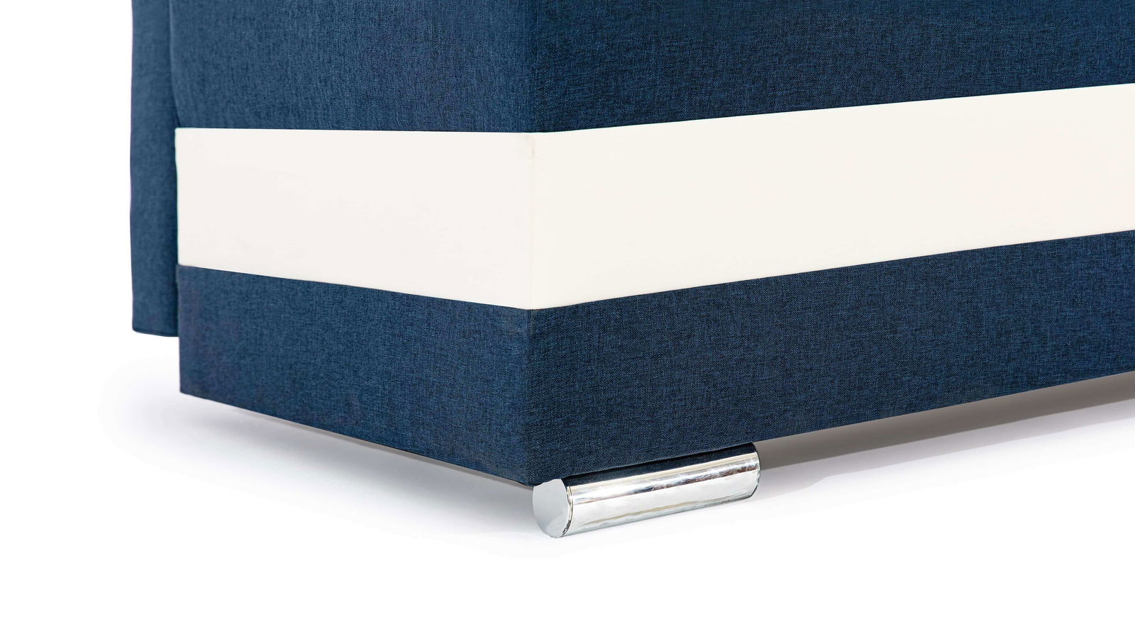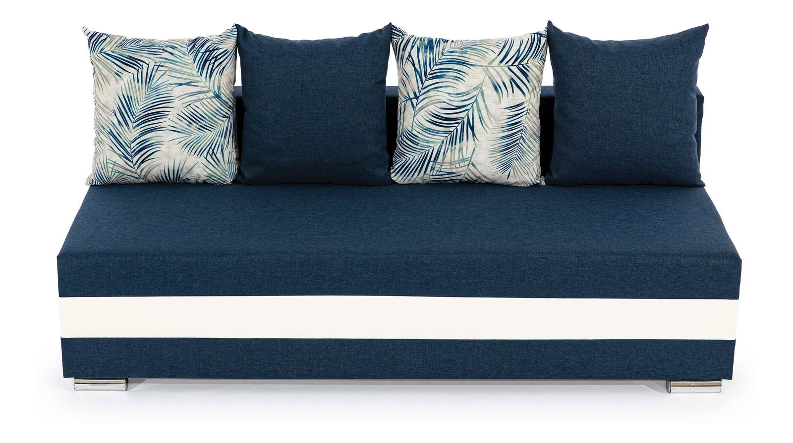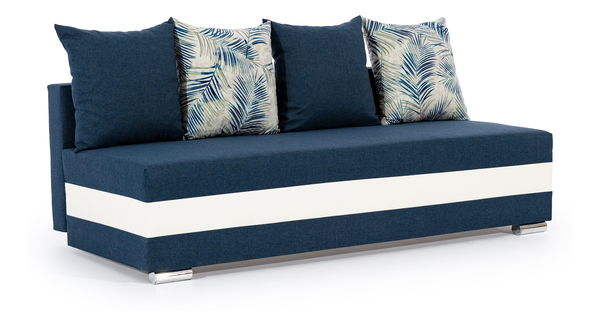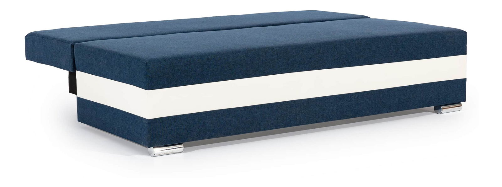 Trojsedačka Callera v modro-bílém provedení je ideálním řešením pro moderní obývací pokoje, stylové kanceláře či útulné studentské pokoje. Její minimalistický design s výrazným bílým pasem a kovovými nohama s lesklým povrchem dodává prostoru svěží a zároveň nadčasový vzhled.