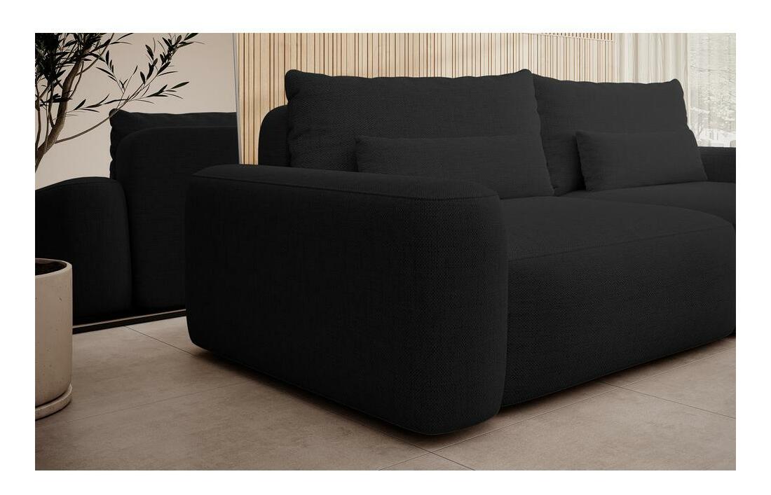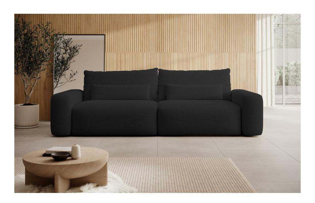ZobrazitHledáte pohodlnou pohovku, která potěší nejen svým designem, ale poskytne také dokonalý relax po dlouhém dni? Právě jste to našli! Sedačka je spojením nejvyšší kvality zpracování, estetiky a funkčnosti Třímístná sedačka je spojením harmonických zaoblených tvarů s minimalistickou strukturou, čímž vzniká kus nábytku s mimořádně moderním výrazem! Pohovka vyrobená z vysoce kvalitní žinylkové látky vyzařuje eleganci a pohodlí. Součástí sady jsou vkusné polštářky, které dodají celému tomu neopakovatelné kouzlo. není jen styl a estetika, je to také funkčnost přizpůsobená potřebám každodenního života. Pohovka vybavená mechanismem DL se snadno změní na pohodlné místo na spaní. Rozkládání na spaní se díky automatickému mechanismu stává dětskou hrou. Pohovka navíc obsahuje praktický zásobník na ložní prádlo, který vám umožní udržovat v místnosti pořádek. Pohodlí sedadla je zdůrazněno použitím vlnových pružin typu B v sedadle, které poskytují vynikající oporu a rovnoměrné rozložení hmotnosti těla. Pohovka je ideální volbou pro ty, kteří ve svém okolí oceňují estetiku i funkčnost. Přidejte se k revoluci v pohodlném relaxu! Vyberte si sedačku a objevte ve svém interiéru nový rozměr relaxu! Hledáte něco většího? Určitě si prohlédněte naše rohové pohovky ze stejné kolekce Podrobnosti o produktu: volně stojící model (s čalouněným opěradlem), snadno použitelná funkce na spaní typu DL, praktický kontejner na postel jako standard, vlnové pružiny typu B v! sedátko, dva dekorativní polštáře v ceně, kus nábytku čalouněný látkou Moly 99 v černé barvě, Moly je odolná, odolná látka, která je mimořádně jemná na dotek. Vyrobeno z žinylkové látky, má jemný a jemný vzor s elegantní vazbou, kterou lze nahmatat prsty. Tato látka spojuje originální design s praktickým využitím. Pokryté speciální hydrofobní vrstvou Water Repellent chrání před rychlou absorpcí tekutin. To znamená, že tekutiny neproniknou okamžitě do struktury látky, ale zůstanou na jejím povrchu.