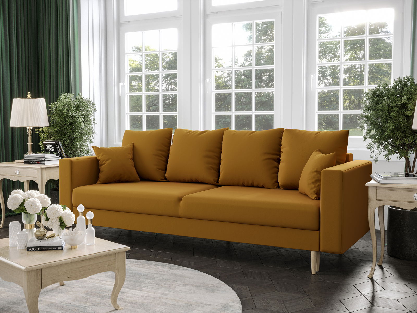 Ideální řešení pro moderní obývací pokoje, které ocení kombinaci komfortu a funkčnosti. S rozměry 230 cm na šířku a 95 cm na hloubku poskytuje dostatek prostoru pro pohodlné sezení pro celou rodinu nebo návštěvu. Díky kvalitní výplni z pěny T30 a vlnitých pružin typu A nabízí ergonomické sezení, které podporuje správnou oporu těla a zároveň zaručuje dlouhodobou odolnost.