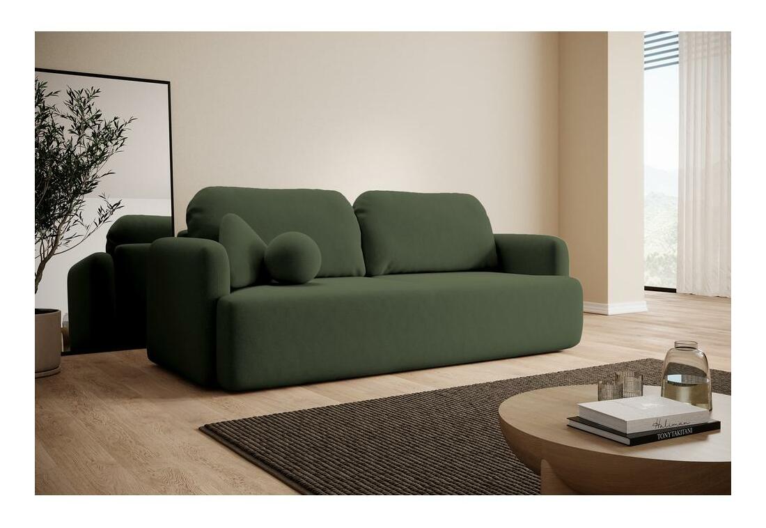ZobrazitIdeální kus nábytku pro odpolední chvíle s kávou a dobrou knihou? Představujeme sedačku - spojení jedinečného designu a pohodlí, které Vás jistě potěší Sedačka je designový kus nábytku čalouněný látkou s unikátní boucle strukturou. Bude dokonalým doplňkem světlých, moderních interiérů odkazujících na přírodu. Zaoblené tvary pohovky dokonale zapadají do současných trendů interiérového designu a polštáře ve tvaru trojúhelníku a koule jí dodávají charakter. Jednoduchý tvar Lambiny s kompaktními rozměry je vyroben z vlnové pružiny typu B, díky čemuž je sedátko nábytku flexibilnější a tím i velmi pohodlné. Tento pocit umocňuje výplň z vysoce elastické PU pěny, díky které je díky přiměřené hustotě měkká a pohodlná. navíc má tato pěna hygienický certifikát vydaný Státním zdravotním ústavem – Státním hygienickým ústavem a Certifikát podle STANDARD 100 od OEKO-TEX ® vydaný Textilním institutem v Lodži. má velký kontejner na ložní prádlo nebo jiné předměty, což je nepochybně dalším komfortem. Tento kus nábytku snadno přeměníte na funkci na spaní o ploše 152/200 cm, na které mohou spát vaši rodinní příslušníci nebo hostující hosté Podrobnosti o produktu: volně stojící model (s čalouněnými zády), ozdobný dvou-. prošívání jehlou, snadno použitelná funkce na spaní typ DL, standardně velká nádoba na lůžkoviny, součástí balení dekorační polštáře ve tvaru koule a trojúhelníku, pohovka je čalouněna snadno čistitelnou látkou Castel 39 olivové barvy, Castel je měkká, hladká tkanina vyznačující se vysokou odolností , oděru a žmolkování, díky čemuž je ideální pro každodenní nábytek. Další výhodou je Easy Clean Technology – materiál se snadno čistí, což umožňuje snadné odstranění nečistot s trochou vody a měkkým hadříkem.