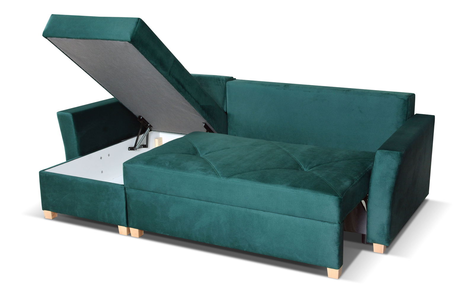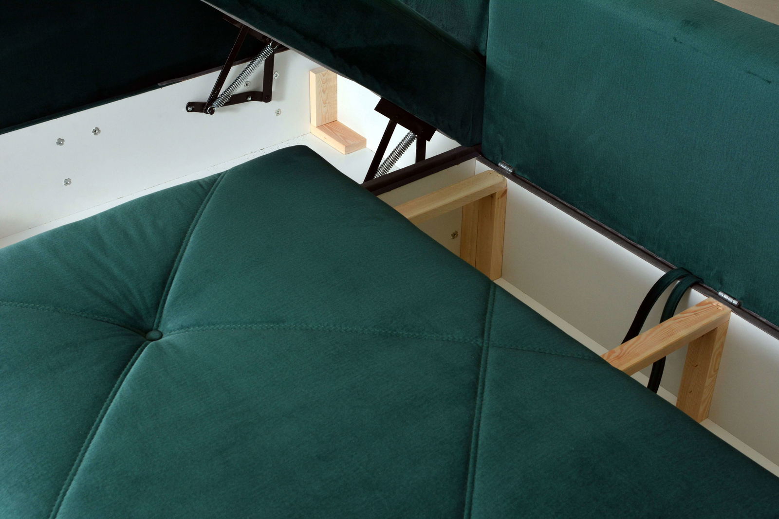 - Praktickým doplňkem jsou dva úložné prostory uschovat například přikrývky či polštáře.