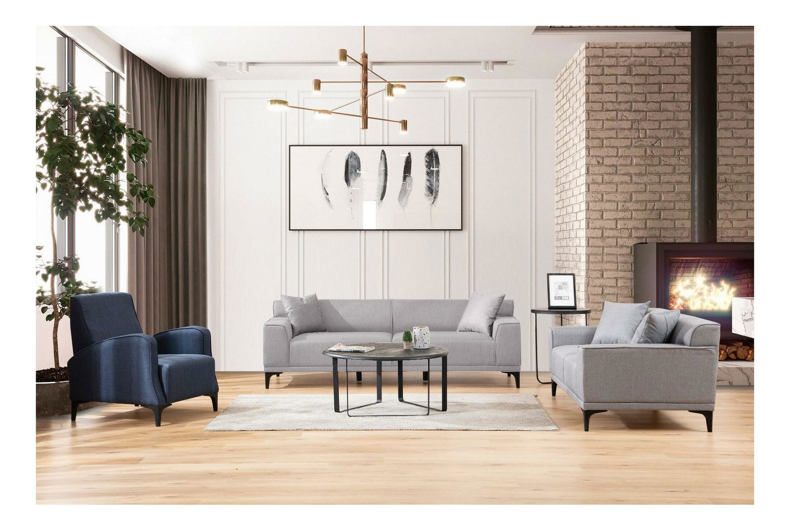 - Pohovka trojsedačka Petrafonzo (světle šedá + černá)