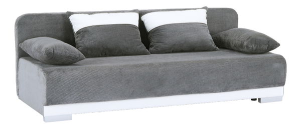 Prijmeni kontrast šedé látky s bílou ekokůží působí stylově a moderně. Součástí jsou i polštáře, které mají funkci opěrku zad a područek. Sedačka se dá rozložit a tím získáte plochu na spaní s rozměrem 148 x 198 cm.