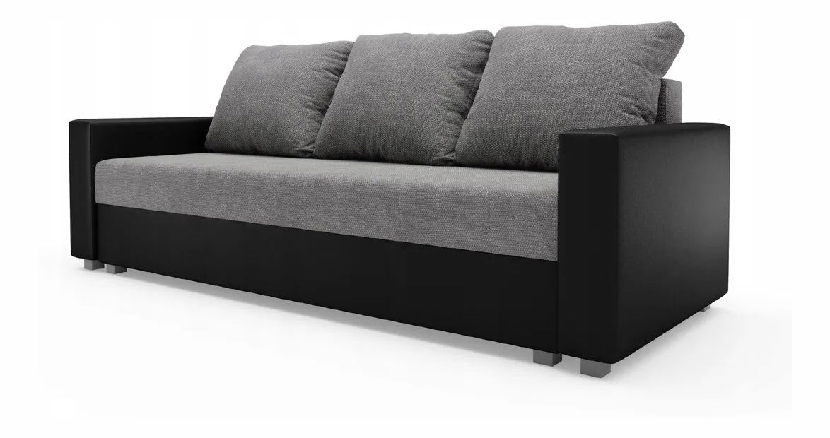 Pohovka Rimak je řešením pro každý obývací pokoj, které spojuje moderní design s praktičností. Její dvoubarevné provedení v černé a šedé barvě dodává prostoru stylový a neutrální univerzální vzhled, který snadno zapadne do různých interiérů – od minimalistických, přes industriální až po klasické styly. Trojsedačka nabízí dostatek místa pro pohodlné sezení pro celou rodinu nebo návštěvu, přičemž její pevná konstrukce ze dřeva a dřevotřísky zaručuje dlouhou životnost. odpočinku, nebo při spánku. Praktická funkce rozkládání s automatickým mechanismem umožňuje rychlé a snadné přeměnění pohovky na lůžko o rozměrech 194 x 1 řešení pro spaní. Tři velké opěrkové polštáře se zipem nejenže zvyšují pohodlí, ale také usnadňují údržbu a čištění.
