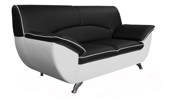 Elegantní 2-sed se zaoblenými opěrkami rukou, boky a výrazným prošíváním opěradla a sedáku. Sedací část, opěrky rukou a opěradlo mají výrazné obšití. 2-sed je potažen látkou v kombinaci s koženkou a má hrubší kovové nohy. Na výběr je více barevných provedení.