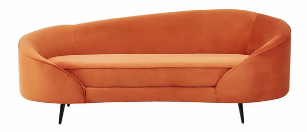 Okouzlující design této stylové pohovky se stane středobodem jakéhokoli obývacího pokoje. Její tvarovaná silueta s tlustým čalouněním a příjemně zaobleným opěradlem vás bude přímo lákat sednout si a užít si pohodlí, které nabízí. Pohovka je čalouněna jemně třpytivou sametovou látkou v nádherném odstínu oranžové a díky zlatým kovovým nohám vypadá mimořádně elegantně.