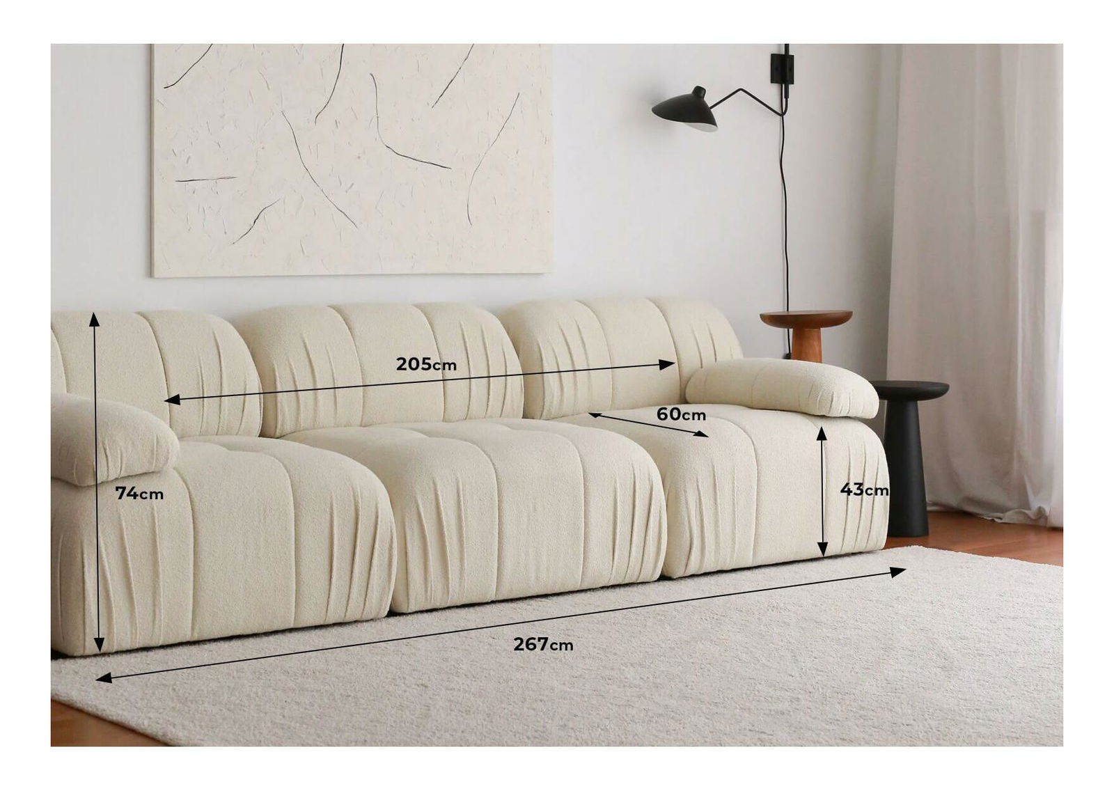 Šířka: 267 cm Výška: 74 cm Hloubka: 89 cm
