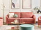 Udělejte si pohodlí na této jedinečné 3-místné pohovce s oblým tvarem, která vytvoří útulnou atmosféru ve vašem interiéru. Hrubé čalouněné sedátko a nadýchané polštáře na opěradle zaručují vynikající komfort během sezení. Zlaté kovové nohy zvýrazňují jedinečnou barvu čalounění a designu pohovky dodávají eleganci.