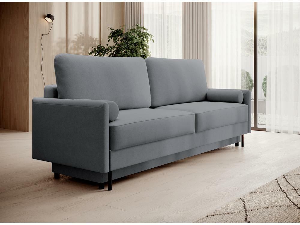 ZobrazitPlánujete ve svém bytě vytvořit skutečný relaxační koutek? Kolekce pohovek vám pomůže dosáhnout kýženého cíle! Pohovku s funkcí spánku ocení lidé, kteří chtějí spojit dokonalou krásu s vysokou funkčností. Tento stylový model se bude perfektně hodit do vašeho bytu, díky čemuž si v bytě vytvoříte oddechovou zónu. Prostorné sedátko s povrchem vyplněným vlnovými pružinami a prostornými polštáři jemně obejme vaše tělo a poskytne vám vysoký komfort při sezení nebo ležení. Celek doplňují půvabné područky v podobě malých válců. Není divu, že odpolední šálek kávy ve společnosti vašich blízkých nebo večerní filmový maraton vám umožní zcela načerpat energii, kterou jste ztratili během dne! se může pochlubit také praktickou funkcí spánku podporovanou automatickým zařízením. To znamená, že stačí jen pár jednoduchých a rychlých pohybů, abyste jej přeměnili na pohodlnou postel. Standardní nádoba se osvědčí pro uskladnění textilií potřebných v procesu podestýlky. Detaily produktu: hloubka sedu po odstranění polštářů: 78 cm, výška spací plochy: 45 cm, praktická funkce na spaní, speciální automatická pomůcka na rozkládání, dřevěné nohy, standardně praktický kontejner na lůžkoviny, sedák na vlnové pružině, nábytek čalouněný Cloud 91 Cloud je samet příjemný na dotek s hladkým povrchem. Vysoce odolný proti oděru, žmolkování a tření. Pod vlivem světla nevybledne. Technologie Easy Cleaning umožňuje čištění vodou. Vyhovuje Cigaretovému testu, barva: tmavě šedá, montáž: nezávislá.
