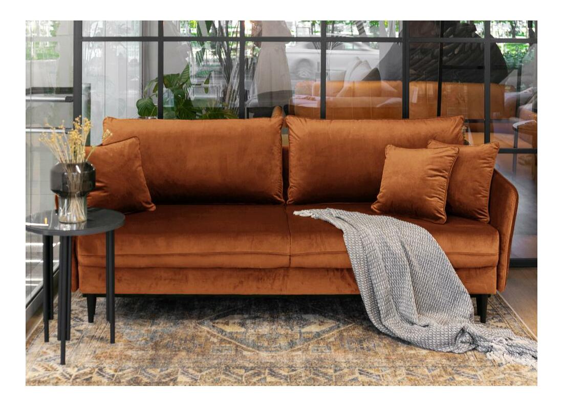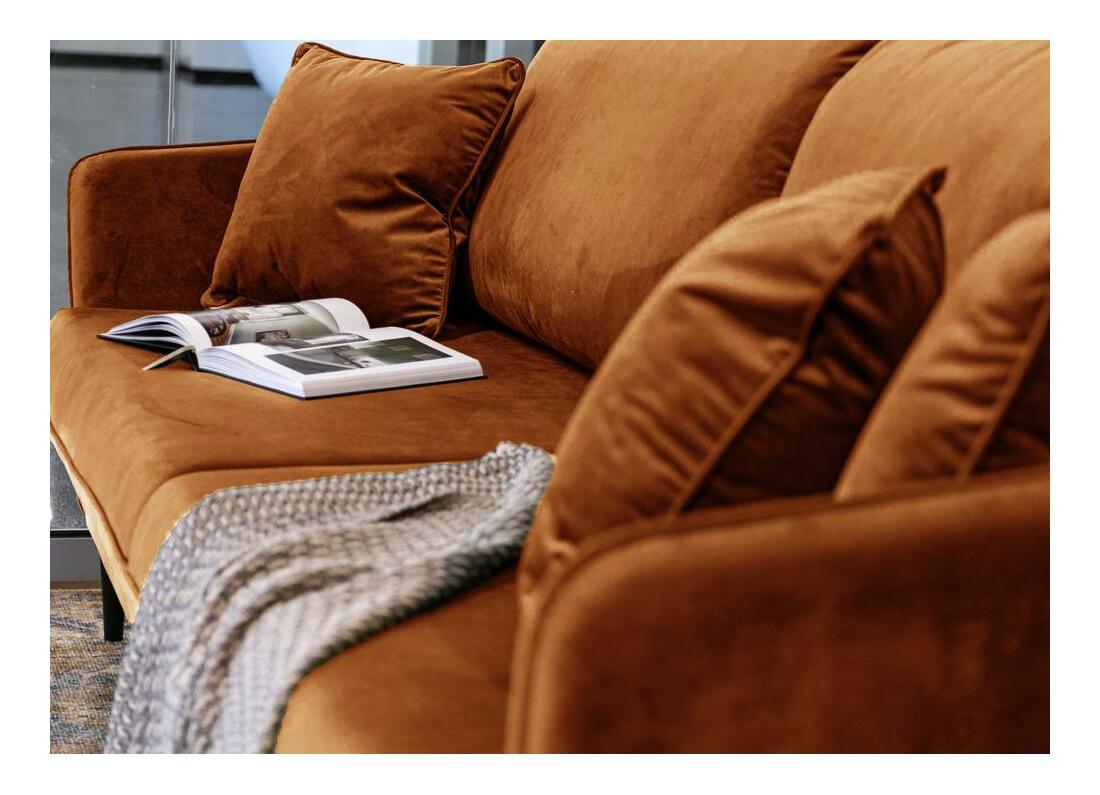 ZobrazitOceňujete subtilní nábytek, který potěší svojí nevtíravou elegancí? Potom je pohovka navržena právě pro vás Pohovka je nabídka, která vzbuzuje obdiv svou minimalistickou formou, ve které je jasně viditelná inspirace klasickými aranžérskými řešeními. Vysoké, téměř obdélníkové polštářky zádové opěrky dostatečně podepřou vaše záda a pohodlné opěradlo vám umožní zasloužený odpočinek. Povrch nábytku je vyplněn pěnou a vlnitými pružinami, takže je dostatečně měkký, aby bylo jeho používání mimořádně příjemné, a zároveň dostatečně pružný, aby nedocházelo k deformacím. Díky zabudované funkci spaní na základě praktického systému rozkladu DL snadno přeměníte kus nábytku na prostornou postel, kde můžete přespat hosty nebo zorganizovat setkání pro větší skupinu Podrobnosti o produktu: rám je vyroben z kombinace dřeva a dřevotřísky, díky které je konstrukce odolná vůči deformacím, sedátko vyplněné vlnitými pružinami a pěnou T3037 je pružné a po použití se rychle vrátí do původního tvaru, standardní kontejner na lůžkoviny, polštáře lze vyjmout, volně stojící model - má čalouněná záda, sada obsahuje dekorační polštáře, vejde se tři osoby, výška opěradla: 90 cm, šířka opěradla: 221 cm, výška područky: 64/75 cm, nábytek čalouněný látkou Magic Velvet 2286 v měděném odstínu Magic Velvet je stylový samet s jemným leskem. Odolný vůči tření, žmolkování a světlu. Waterproof Technology způsobuje, že kapalina kondenzuje na povrchu materiálu ve formě kapek Animal-friendly Technology, která je zodpovědná za zvýšenou odolnost látky zpomalující hoření.