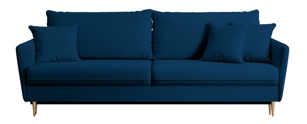 ZobrazitOceňujete subtilní nábytek, který potěší svojí nevtíravou elegancí? Potom je pohovka navržena právě pro vás! Sedačka je návrhem, který vzbuzuje obdiv svojí minimalistickou formou, ve které je jasně viditelná inspirace klasickými aranžérskými řešeními. Vysoké, téměř obdélníkové polštářky zádové opěrky dostatečně podepřou vaše záda a pohodlné opěradlo vám umožní zasloužený odpočinek. Povrch nábytku je vyplněn pěnou a vlnitými pružinami, takže je dostatečně měkký, aby bylo jeho používání mimořádně příjemné, a zároveň dostatečně pružný, aby nedocházelo k deformacím. Díky vestavěné funkci spánku založené na praktickém rozkládacím systému DL můžete nábytek jednoduše přeměnit na prostornou postel, kde můžete přespat hosty nebo zorganizovat schůzku pro větší skupinu. Detaily produktu: rám je vyroben z kombinace dřeva a dřevotřísky, díky čemuž je konstrukce odolná vůči deformaci, sedák vyplněný vlnovými pružinami a pěnou T3037 je pružný a po použití se rychle vrátí do původního tvaru, standardem je kontejner na lůžkoviny, polštáře lze odebrat, model volně stojící - má čalouněná záda, sada obsahuje dekorační polštáře, pojme tři lidi, výška opěradla: 90 cm, šířka opěradla: 221 cm, výška područky: 64/75 cm, nábytek čalouněný Magic Látka Velvet 2204 v námořnické modré Magic Velvet je stylový samet s jemným leskem. Odolný vůči tření, žmolkování a světlu. Waterproof Technology způsobuje, že kapalina kondenzuje na povrchu materiálu ve formě kapek. Za zvýšenou odolnost vůči aktivitě zvířat je zodpovědná technologie šetrná ke zvířatům. Tkanina zpomalující hoření.