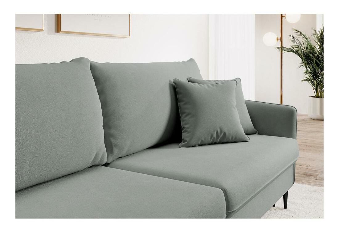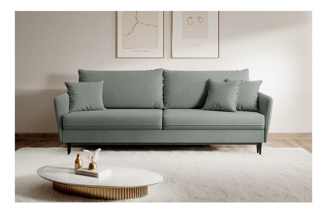 ZobrazitOceňujete subtilní nábytek, který potěší svojí nevtíravou elegancí? Potom je pohovka navržena právě pro vás! Sedačka je návrhem, který vzbuzuje obdiv svojí minimalistickou formou, ve které je jasně viditelná inspirace klasickými aranžérskými řešeními. Vysoké, téměř obdélníkové polštářky zádové opěrky dostatečně podepřou vaše záda a pohodlné opěradlo vám umožní zasloužený odpočinek. Povrch nábytku je vyplněn pěnou a vlnitými pružinami, takže je dostatečně měkký, aby bylo jeho používání mimořádně příjemné, a zároveň dostatečně pružný, aby nedocházelo k deformacím. Díky vestavěné funkci spánku založené na praktickém rozkládacím systému DL můžete nábytek jednoduše přeměnit na prostornou postel, kde můžete přespat hosty nebo zorganizovat schůzku pro větší skupinu. Detaily produktu: rám je vyroben z kombinace dřeva a dřevotřísky, díky čemuž je konstrukce odolná vůči deformaci, sedák vyplněný vlnovými pružinami a pěnou T3037 je pružný a po použití se rychle vrátí do původního tvaru, standardem je kontejner na lůžkoviny, polštáře lze odebrat, model volně stojící - má čalouněná záda, sada obsahuje dekorační polštáře, pojme tři lidi, výška opěradla: 90 cm, šířka opěradla: 221 cm, výška područky: 64/75 cm, nábytek čalouněný Magic Látka Velvet 2217 v odstínu šedé Magic Velvet je stylový samet s jemným leskem. Odolný vůči tření, žmolkování a světlu. Waterproof Technology způsobuje, že kapalina kondenzuje na povrchu materiálu ve formě kapek. Za zvýšenou odolnost vůči aktivitě zvířat je zodpovědná technologie šetrná ke zvířatům. Tkanina zpomalující hoření.