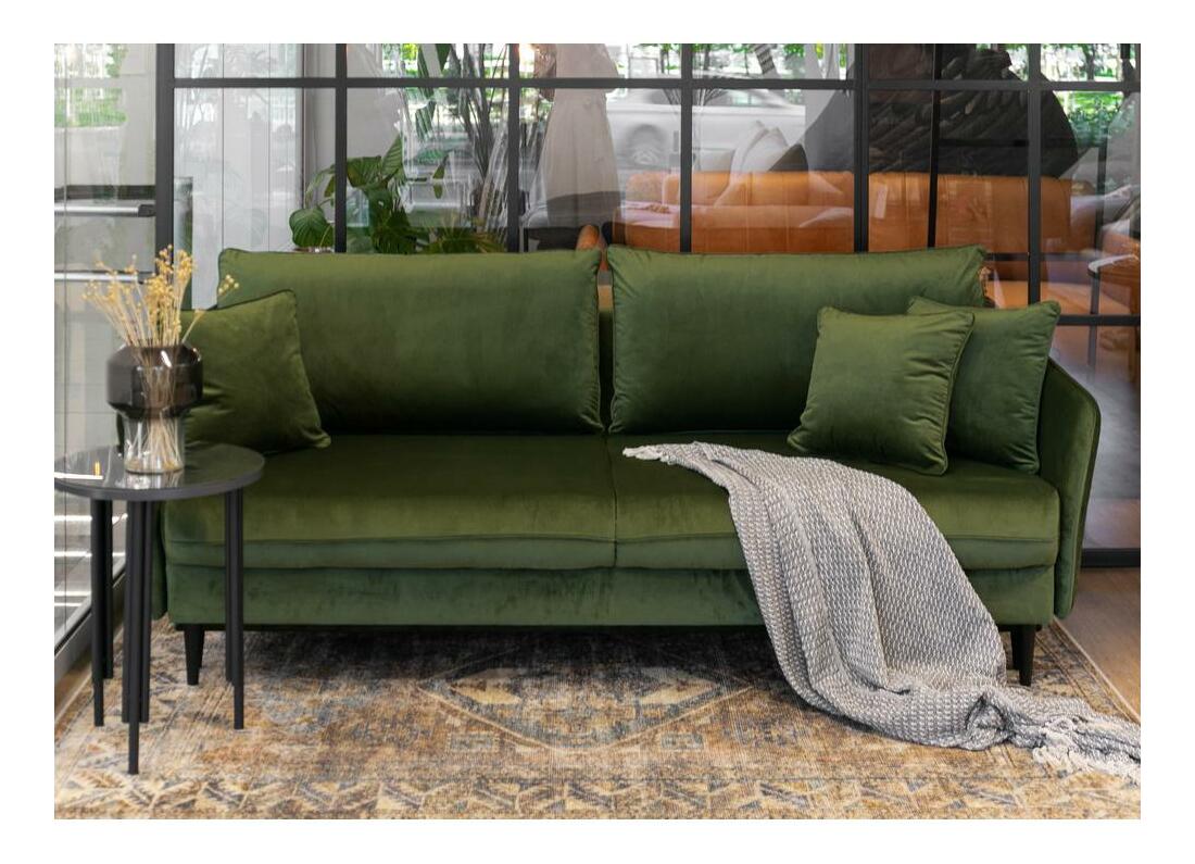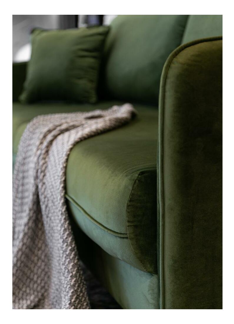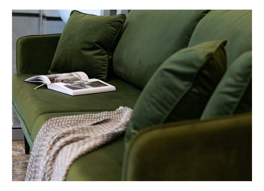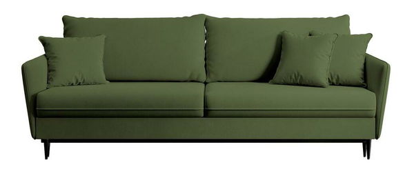 ZobrazitOceňujete subtilní nábytek, který potěší svojí nevtíravou elegancí? Potom je pohovka navržena právě pro vás! Sedačka je návrhem, který vzbuzuje obdiv svojí minimalistickou formou, ve které je jasně viditelná inspirace klasickými aranžérskými řešeními. Vysoké, téměř obdélníkové polštářky zádové opěrky dostatečně podepřou vaše záda a pohodlné opěradlo vám umožní zasloužený odpočinek. Povrch nábytku je vyplněn pěnou a vlnitými pružinami, takže je dostatečně měkký, aby bylo jeho používání mimořádně příjemné, a zároveň dostatečně pružný, aby nedocházelo k deformacím. Díky vestavěné funkci spánku založené na praktickém rozkládacím systému DL můžete nábytek jednoduše přeměnit na prostornou postel, kde můžete přespat hosty nebo zorganizovat schůzku pro větší skupinu. Detaily produktu: rám je vyroben z kombinace dřeva a dřevotřísky, díky čemuž je konstrukce odolná vůči deformaci, sedák vyplněný vlnovými pružinami a pěnou T3037 je pružný a po použití se rychle vrátí do původního tvaru, standardem je kontejner na lůžkoviny, polštáře lze odebrat, model volně stojící - má čalouněná záda, sada obsahuje dekorační polštáře, pojme tři lidi, výška opěradla: 90 cm, šířka opěradla: 221 cm, výška područky: 64/75 cm, nábytek čalouněný Magic Látka Velvet 2295 v olivm odstínu Magic Velvet je stylový samet s jemným leskem. Odolný vůči tření, žmolkování a světlu. Waterproof Technology způsobuje, že kapalina kondenzuje na povrchu materiálu ve formě kapek. Za zvýšenou odolnost vůči aktivitě zvířat je zodpovědná technologie šetrná ke zvířatům. Tkanina zpomalující hoření.