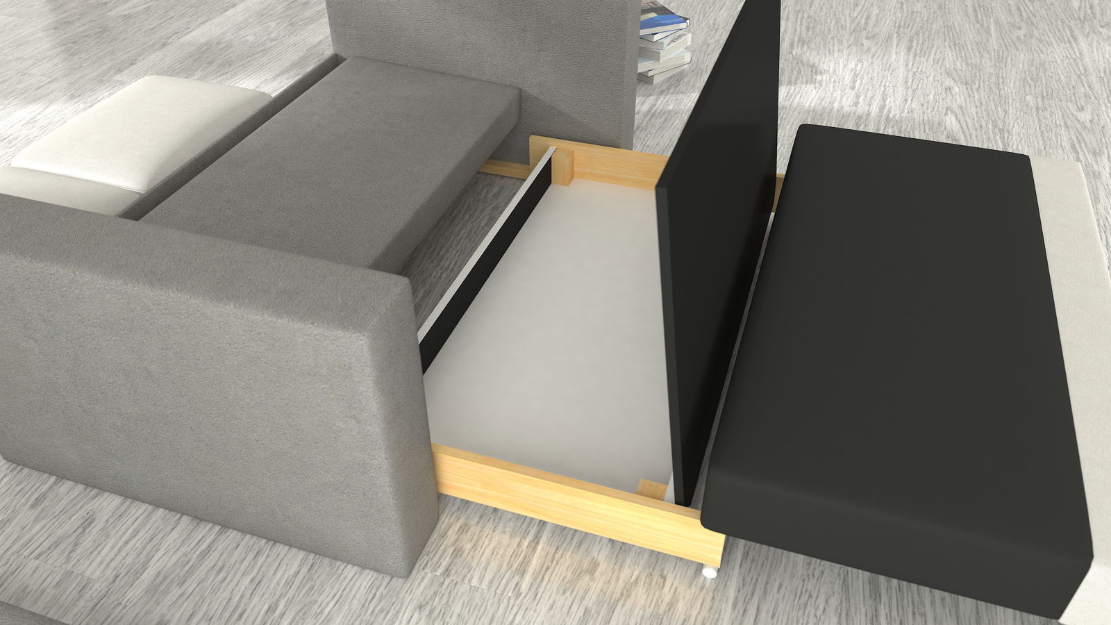 - Posuvné dno a převrácené opěradlo umožňují snadné a rychlé rozložení na plochu na spaní o rozměrech 125. T25 a prostorné polštáře zajišťují měkké a ergonomicky tvarované sezení.