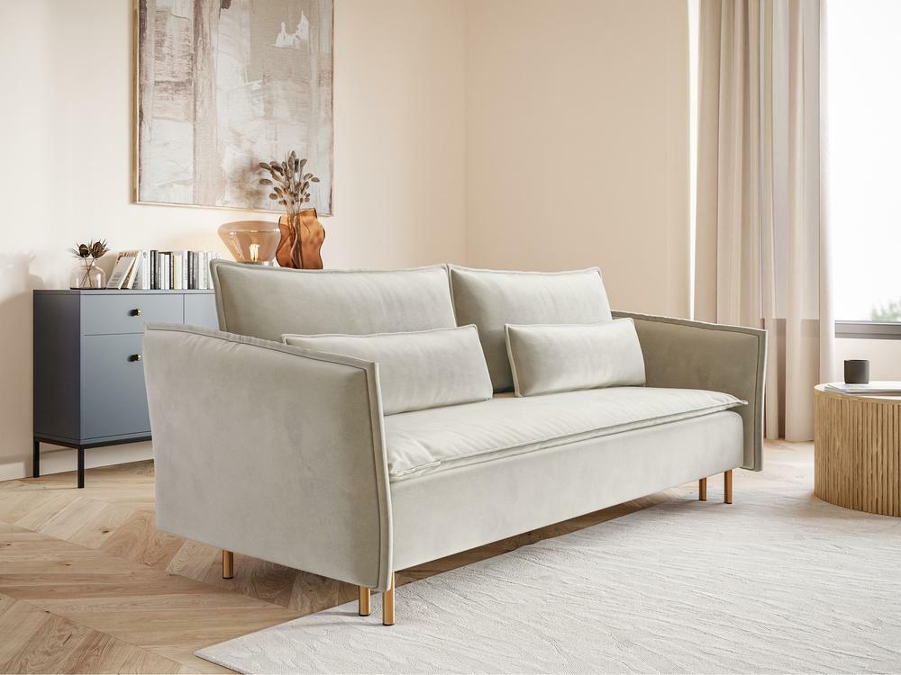 ZobrazitOceňujete stylová aranžmá? Sedačka bude perfektní volbou Sedačka ummo má moderní design v kombinaci s funkčností. Jednoduchý tvar se štíhlými područkami je podepřen na vysokých kvých nožičkách. Konstrukce je vyplněna měkkou pěnou a profilovanými vlnovými pružinami – díky této struktuře se nábytek rychle vrátí do původního vzhledu, aniž by zůstal promáčknutý a deformovaný. Polštáře, které jsou součástí pohovky, ji navzdory minimalistickému vzhledu zútulní a podnítí k odpočinku. Nábytek má funkci na spaní a je vybaven mechanismem DL, který vám umožní rychle přeměnit pohovku na pohodlné lůžko s velkou plochou. Praktický kontejner Vám umožní uložit náhradní lůžkoviny pro hosty. Podrobnosti o produktu: počet míst k sezení: 3, nožičky zlaté barvy, nábytek pro svépomocnou montáž, čalouněná zadní část nábytku, odnímatelné polštáře, dekorační polštáře v ceně, nábytek čalouněný Magic. Velvet 2201 látka šedo-béžová, Magic Velvet je stylový samet s jemným leskem. Odolná vůči tření, žmolkování a světlu Waterproof Technology způsobuje kondenzaci kapaliny na povrchu materiálu ve formě kapek. Za zvýšenou odolnost vůči aktivitě zvířat je zodpovědná technologie šetrná ke zvířatům. Tkanina zpomalující hoření.
