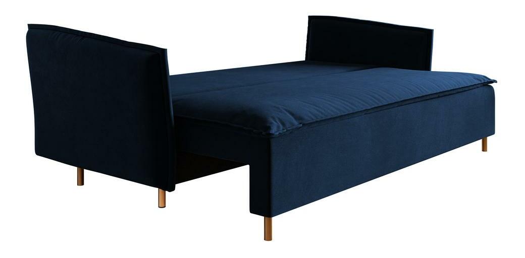 ZobrazitOceňujete stylová aranžmá? Sedačka bude perfektní volbou Sedačka ummo má moderní design v kombinaci s funkčností. Jednoduchý tvar se štíhlými područkami je podepřen na vysokých kvých nožičkách. Konstrukce je vyplněna měkkou pěnou a profilovanými vlnovými pružinami – díky této struktuře se nábytek rychle vrátí do původního vzhledu, aniž by zůstal promáčknutý a deformovaný. Polštáře, které jsou součástí pohovky, ji navzdory minimalistickému vzhledu zútulní a podnítí k odpočinku. Nábytek má funkci na spaní a je vybaven mechanismem DL, který vám umožní rychle přeměnit pohovku na pohodlné lůžko s velkou plochou. Praktický kontejner Vám umožní uložit náhradní lůžkoviny pro hosty. Podrobnosti o produktu: počet míst k sezení: 3, nožičky zlaté barvy, nábytek pro svépomocnou montáž, čalouněná zadní část nábytku, odnímatelné polštáře, dekorační polštáře v ceně, nábytek čalouněný Magic. Látka Velvet 2204 námořnická modrá, Magic Velvet je stylový samet s jemným leskem. Odolná vůči tření, žmolkování a světlu Waterproof Technology způsobuje kondenzaci kapaliny na povrchu materiálu ve formě kapek. Za zvýšenou odolnost vůči aktivitě zvířat je zodpovědná technologie šetrná ke zvířatům. Tkanina zpomalující hoření.