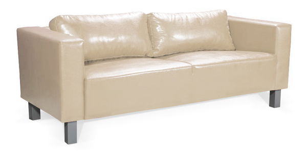 Sedací pohovka Valiano III (béžová) se třemi sedadly, vysoká 77 cm a hluboká 75 cm, je vyrobena z lesklého ekokoženého materiálu a okamžitě upoutá pozornost. Tento kus nábytku je ideální do interiérů zařízených v moderním stylu. Měkká ekokůže a dva velké polštáře zajišťují pohodlné sezení. Konstrukce pohovky je masivní a zahrnuje 15 cm dřevěné nožičky v šedé barvě, které dodávají nábytku vzdušnost. Použité materiály jsou odolné a snadno se udržují. Výplň sezení je z polyuretanové pěny o hustotě 25 kg/m³ a pružinami Faliste. Výška sezení pohovky je 41 cm, hloubka sezení s polštářem je 55 cm a bez polštářů je 68 cm. Pohovka nemá možnost rozkladu ani úložný prostor. Tkanina MG je lesklá ekokůže vynikající kvality, která se obtížně odlišuje od přírodní kůže. Je velmi pružná, měkká a odolná vůči oděru a nečistotám. Balení obsahuje jeden balíček o velikosti 48x75x186 cm a hmotnosti 31 kg.