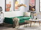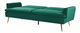 Jednoduchý a moderní design této rozkládací pohovky dokonale doplní zařízení obývacího pokoje v jakémkoli stylu. Během dne poskytne pohodlné místo k sezení a relaxaci pro 3 osoby. Večer ji lze využít jako postel, a to díky rozkládacímu systému. Pohovka má jemné sametové čalounění v tmavě zelené barvě a tvarované kovové nohy ve zlatém provedení jí dodávají elegantní vzhled.