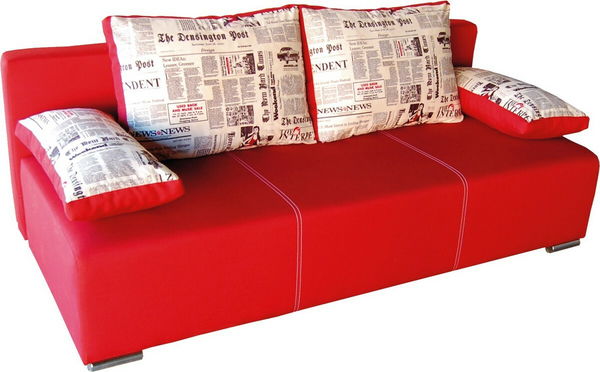 Jednoduchý 3-sed s praktickým využitím. Je čalouněný šenilem s kontrastním prošitím. Na polštářích je použit vzor novin. Čtveřice polštářů jsou příjemnou oporou zad či rukou a pružiny v matraci se postarají o pohodlí při sezení. Systém Automat zaručuje snadné rozložení, čímž vzniká praktická plocha na přespání. Do úložného prostoru můžete odložit polštáře či povlečení. Pohovka je postavena na kovových nohách.