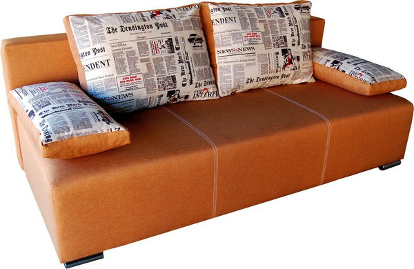 Jednoduchý 3-sed s praktickým využitím. Je čalouněný šenilem s kontrastním prošitím. Na polštářích je použit vzor novin. Čtveřice polštářů jsou příjemnou oporou zad či rukou a pružiny v matraci se postarají o pohodlí při sezení. Systém Automat zaručuje snadné rozložení, čímž vzniká praktická plocha na přespání. Do úložného prostoru můžete odložit polštáře či povlečení. Pohovka je postavena na kovových nohách.