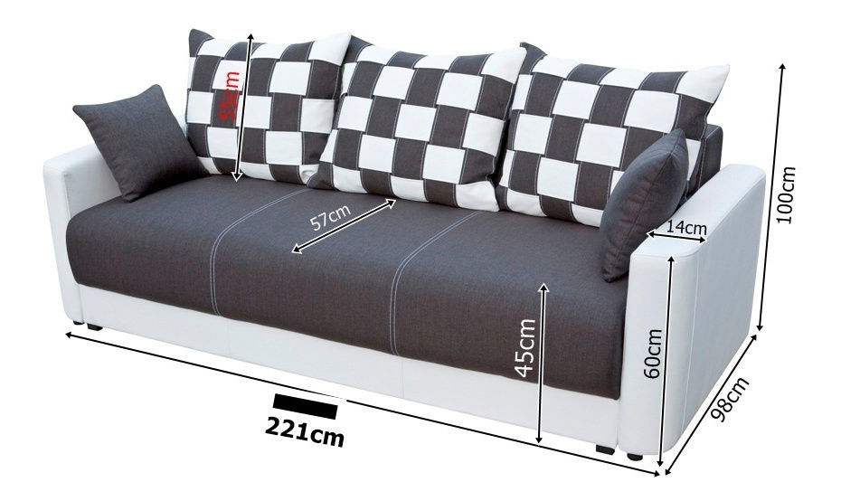 Její univerzální design s čistými liniemi a kontrastními polštáři skandinávských stylů bydlení. Lehce čistitelné materiály a odolná konstrukce z dřevotřísky a laminované desky dělají z této pohovky praktický a stylový doplněk každé domácnosti, který spojuje funkčnost s moderním vzhledem. Rozměry a pohodlí