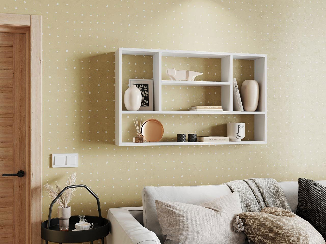 ZobrazitStylová nástěnná dekorace v nejmodernější podobě, to je závěsná police. Světlé barevné provedení se dobře kombinuje s jakoukoli nástěnnou dekorací a neobvyklé rozdělení vnitřních polic zvýrazňuje design celé místnosti. Je to skvělý úložný prostor pro knihy, elegantní doplňky a dekorativní fotorámečky evokující vzpomínky na důležité události. Své místo si zde najde také květináč nebo lahvička s parfémem do domácnosti.