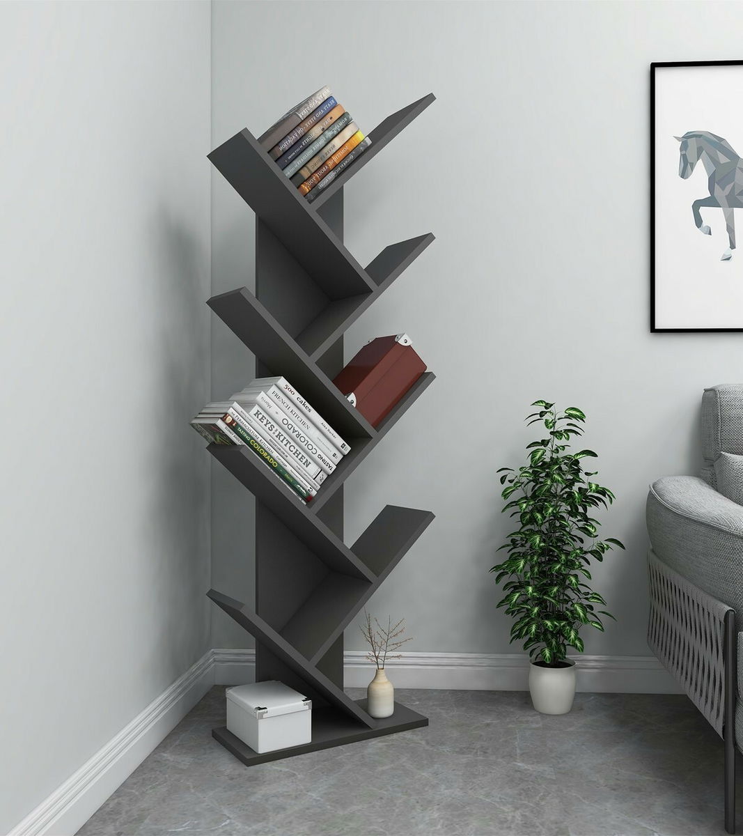 Regál – Hitt (antracit) je ideálním doplňkem do vašeho interiéru. S výškou 128,5 cm, šířkou 46 cm a hloubkou 22 cm poskytuje dostatek prostoru pro uložení vašich věcí. Vyrobeno z kvalitní 100% melaminové desky, regál je odolný a trvanlivý. Jeho elegantní antracitový odstín přidává do vašeho domova moderní a stylový vzhled. Bez ohledu na to, zda jej používáte v obývacím pokoji, pracovně nebo v ložnici, regál Hitt vám nabízí praktické a efektivní řešení pro ukládání a organizování vašich věcí.