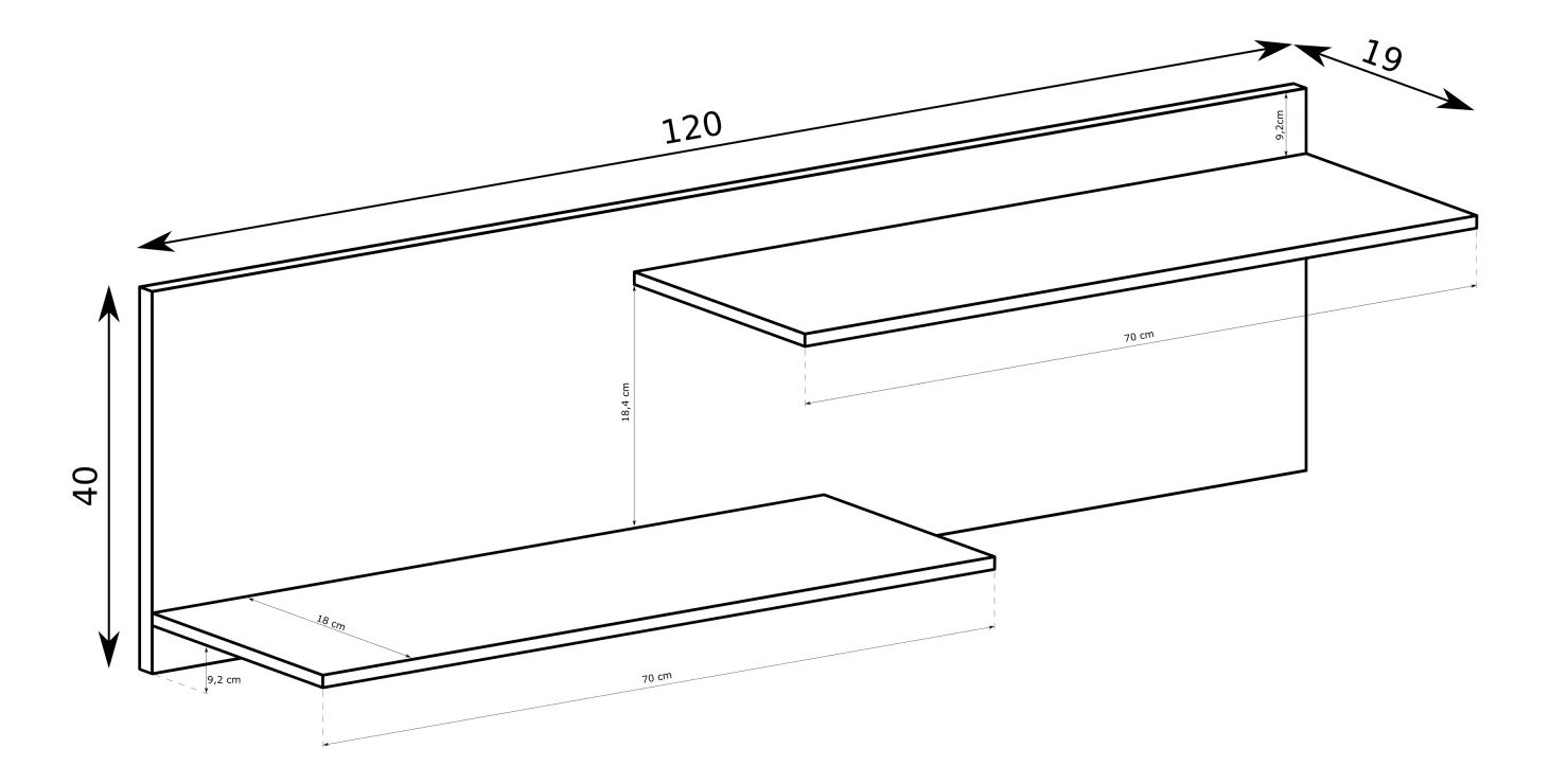 Dvě police v jedné! Moderní řešení, kdy jednu část zavěsíme a knihy můžeme rozdělit na dvě části. K dispozici máme horní a spodní polici. Zadní strana police vytváří bílý podklad pro naše ozdoby, které budou díky lesklému pozadí vypadat úžasně. Poličky jsou pevné a odolné.