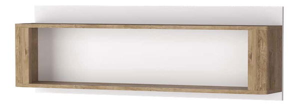 Nevšední police v podobě boxu na knihy. Police k zavěšení na zeď. Lesklé bílé pozadí je dokonalým řešením pro jakoukoli barvu stěn místnosti. Přírodní barvy dubu ribbeck a bílé vytvoří jemné propojení s ostatními prvky systému v místnosti.