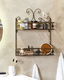 Tato malá, ale prostorná závěsná police vám pomůže zorganizovat prostor v koupelně. Kovový stojan se dvěma poličkami je vhodný pro skladování kosmetiky, toaletních potřeb a jiných drobných předmětů. Pokud polici zavěsíte vedle zrcadla nebo ji připevníte nad toaletu, bude praktickým i dekorativním prvkem v místnosti. Díky ozdobnému rámu s opotřebovaným vzhledem police dokonale zapadne do interiérů ve vintage a venkovském stylu.